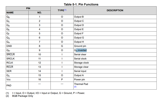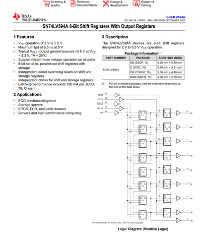 For the TI SN74LV594A, the equivalent circuit diagram in the datasheet shows the Qh' signal, pin 9. However, the pin description in table 5-1 says that the signal Qh' is inverted. The timing diagram in figure 6-1 does not suggest inversion, nor does the equivalent circuit diagram. Is this a typo in the datasheet? If so, could it be updated?