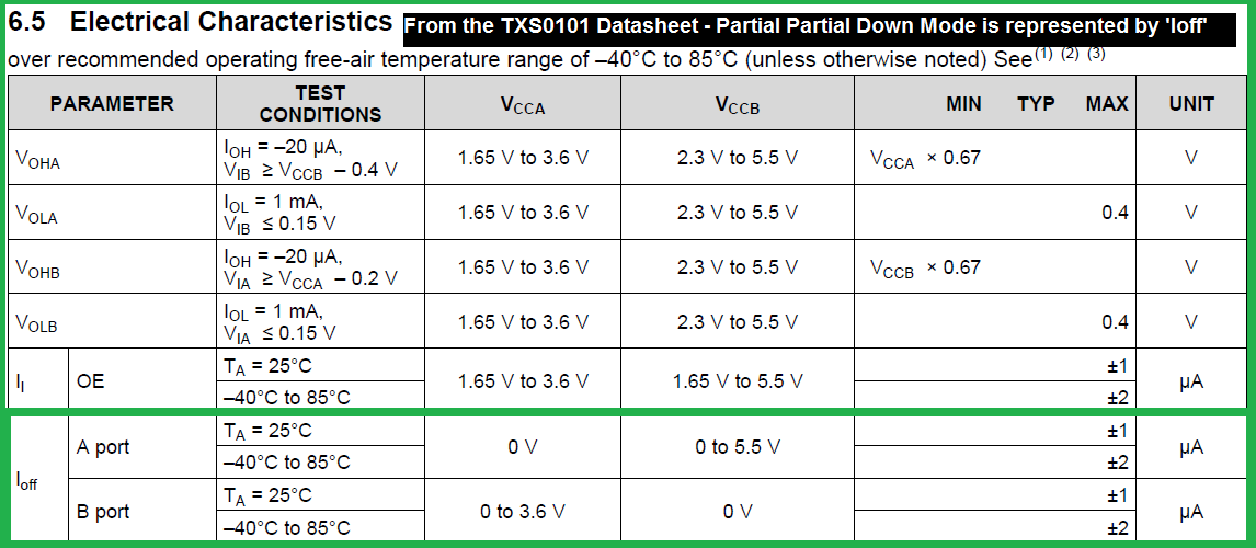 By the way, according to the data sheet of TXS0101 and TXS0102 these parts support the partial power-down mode.