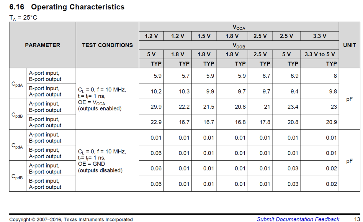 I have even taken the liberty to post the Cpd values of the TXS0108E so you don't have to look it up in the datasheet. See below:
