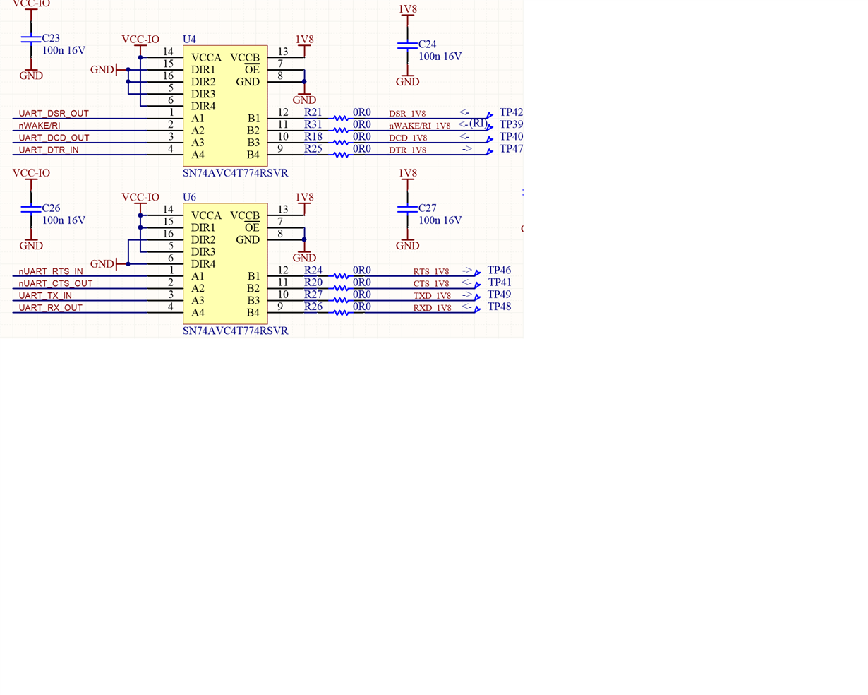 Hi we have trailed 30 units successfully over 4 months of continuous operation using this part however in our first run of production boards we have found an issue with around 40% of the first 500 units. The SN74AVC4T774 has failed and this manifests itself in a verity of ways. First unit had an open circuit between the input to output direction (VCCA to VCCB) and the second looked at so far has a short pulling down the modems UART to ground (VCCB to VCCA). Below is out circuit in this section with 3V3on VCCA and 1V8 on VCCB. In the design VCCA is always powered on but VCCB gets cycled if there is a connection fault with the modem, say 100 times over three months from first units. This batch is different to the last the first batch used for the 30 boards has code ZVK73J the 500 has a code ZVK74J. the boards were loaded by a reputable supplier with the correct heat profiles and the chips came from Digikey. Have you ever seen this issue before please ?