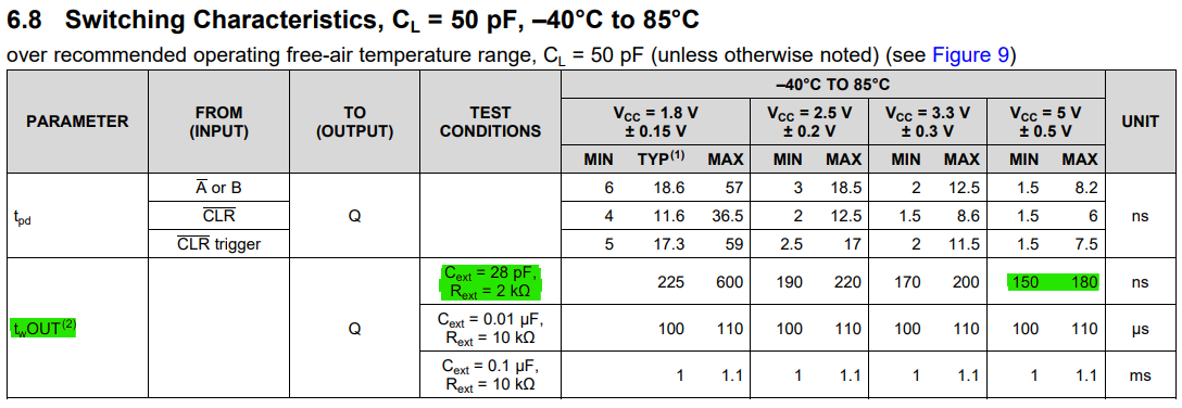 2) Is it possible to get pulse width of 5ns,if so what are the values of Rext and Cext that i should choose