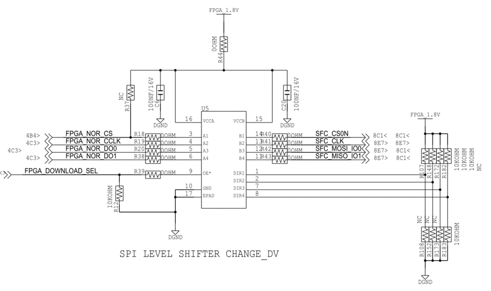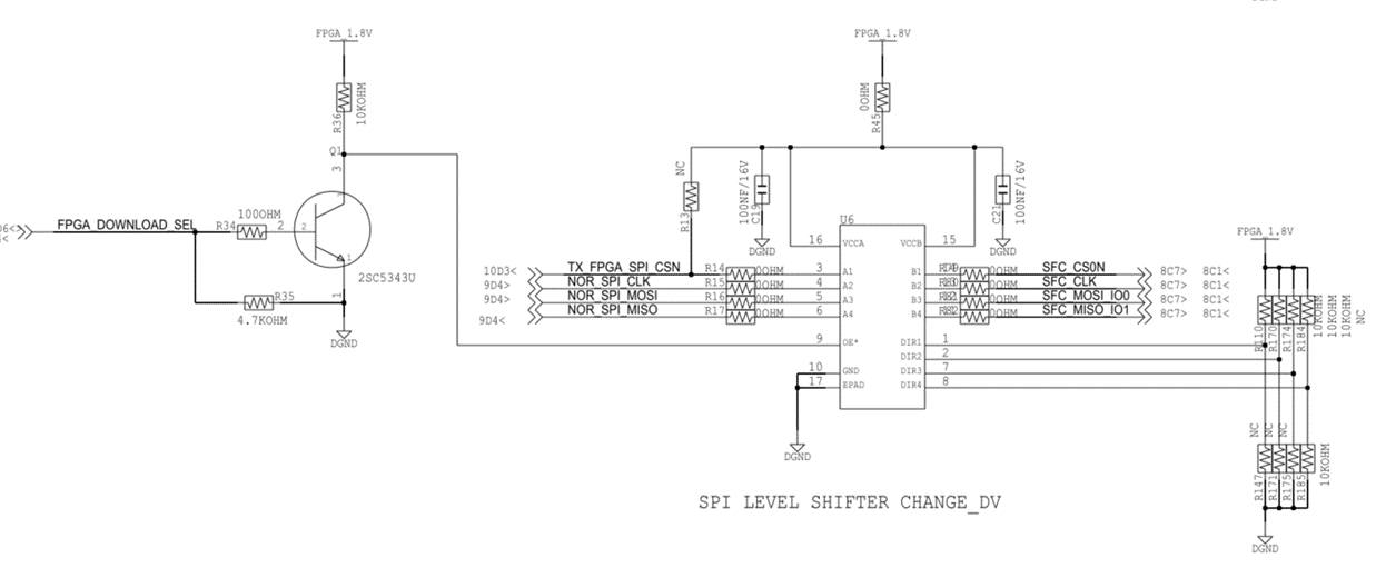 - SN74AVC4T774 was used for NOR Flash SPI communication.