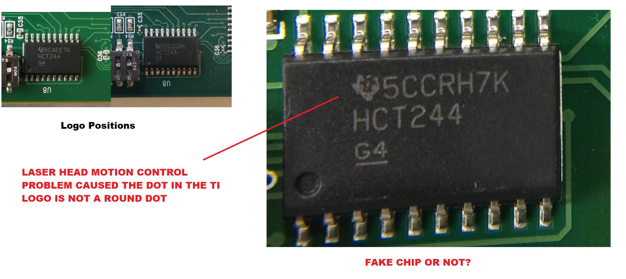 see below. The Texas map logo is not filled by laser engraving. first time to find this chip from contract manufacturer.