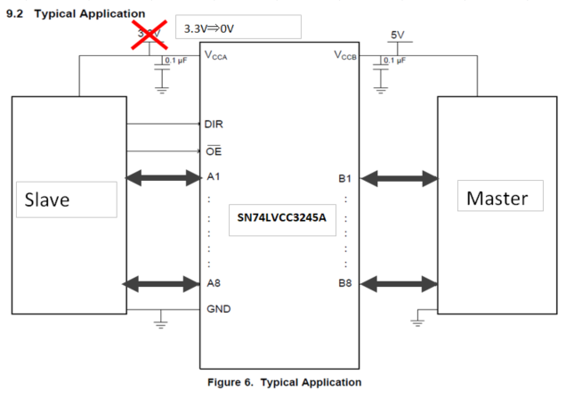 My customer is considering a situation that when 3.3V power on VCCA has a malfunction that becomes 0V. Then only 5V on