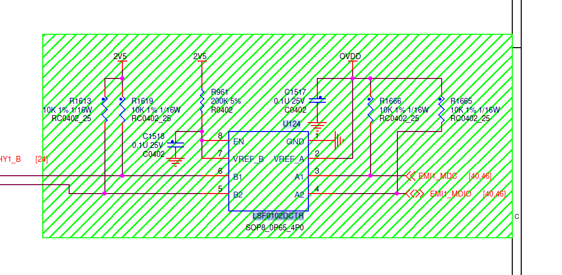 Customer used LSF0102 for MDIO/MDC 1.8V to 2.5V but failed communication. Vh minimum need to > 2V.