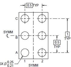 The datasheet is not clear about the ball assignment for the YZP package. Page 2 shows ball names 1-6: