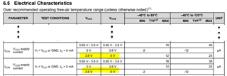 Above I've listed the leakage of the I/O pins, which would be independent of the state of the OE pin since the Vcc isolation feature would already disable the I/O’s.