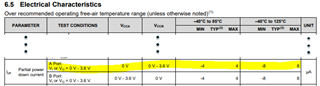 The parameters for this partial power off current when the VCC isolation condition is met (either supply below 100mV) is defined as Ioff in the datasheet (image above).