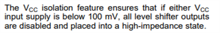 So Vcca is 0V in your condition, although it usually is 1.8V it's powered down so it's 0 for the time being. Under this condition the device will enter the Vcc isolation which effectively isolates the buses. From the datasheet :