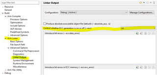 CCS -- Project property --> ATM Linker --> Advanced Options --> Linker Output -->Control whether the ECC generation is ON or OFF: select ON
