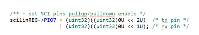But, I found not any block can select the SCI pins pullup/pulldown enable in the Halcogen.
