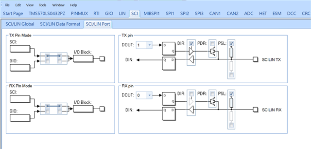 I'm use TMS570LS0432 demo SCI function and set the SCI pins with Halcogen.