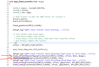 I am trying to use the QSPI flash API for doing a read/erase/write operation to a sector on flash using sector API’s provided in flash.h in board drivers. The Block API’s seem to work, the sector API’s are failing.