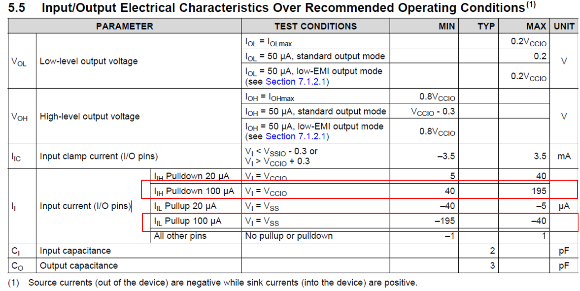 Input current (I/O pins) has 100uA condition, may i know under which condition , PullUp/PullDown could be 100uA?