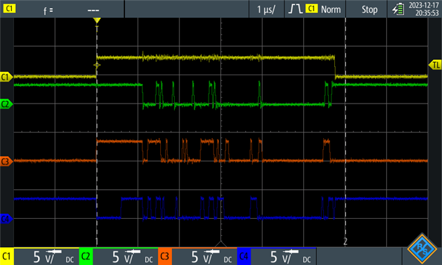 When we check the port sent from DP83869 to AM2434, we see the Rx signal and RXC signal, but there is no content in AM2434's UDMA memory for ENET.