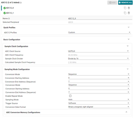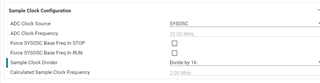 In my application I am using all 16 channels of the 2 ADC modules, in sequence conversion mode and auto sampling mode. What is the maximum Calculated Sample Clock Frequency that can be set? Doing a bit of testing I can't get above 2.5MHz, UPCLK(40MHz) with 16 of Sample Clock divider. Is it possible to increase the frequency further?