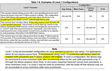 Dennis, analyzing the options, the level 1 wall would be more suitable for mass production. Where I want to have full restriction on my code and I want the device to accept new rewrites.