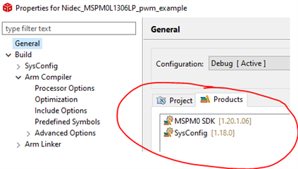 In CCS right click on your project name and select "Show build Settings...". Then select General (as shown below) then products.