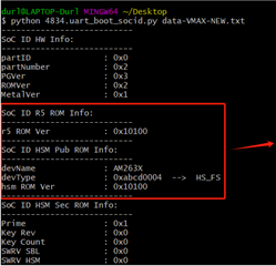 They are developing HSM firmware solution, and found that after changing to new version device with ROM version and HSM ROM version updated, the OTP key writer failed to program the key. The following is the log info of ROM version and HSM ROM version: