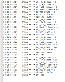 in my application I need to log the CAN Bus error conditions. Now when I trie to test my code I am not able to get the CAN controller in Bus OFF State even when I short the CAN_L / CAN_H lines. the TEC Counter does not go beyond 128. The CAN Error Notification is configured correctly since I get error and status notifiactions but the Bus OFF Flag never get set.