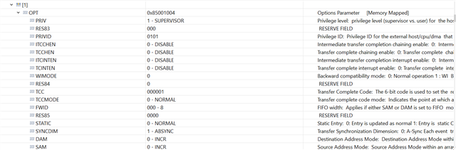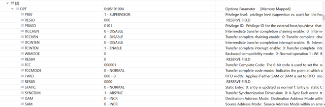 I want to use an interrupt callback when the total transfer is finished. So transfer interrupt is enabled. The OPT register value is
