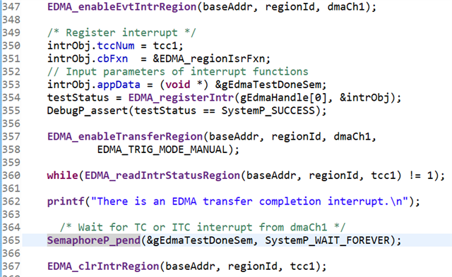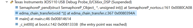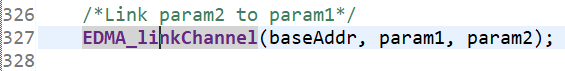 I need you help look into some EDMA issue. I want to use 2 EDMA channel to swap the data in sourceArray and destArray. dmaCh0 and dmaCh1 are transfer channels. And I apply 3 paramSets: param0, param1 and param2. Param0 is assigned to dmaCh0. Param1 and param2 are assigned to dmaCh1. I want to use linking function on dmaCh1. dmaCh0 and dmaCh1 are chained, I'll trigger dmaCh0 manually. The expected process should be I trigger dmaCh0 manually(param0) -> dmaCh1 is triggered because it's chained to dmaCh0(param1) -> param2 is executed on dmaCh1(param2 is linked to param1). But I face some problems when using this method