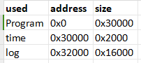 I want to use flash memory from 0x0 until 0x2FFFF for my program, 0x30000 until 0x31FFF for time value, 0x32000 until 0x57FFF for log value.