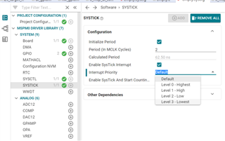 You can open one example code from our SDK and open the Sysconfig. You can find the Systick module and find the setting of Systick interrupt. You can set the interrupt priority in the sysconfig.