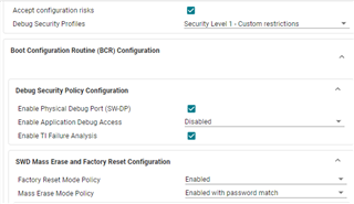 With the following configuration I am able to achieve my requirements using CCS IDE, but when I am trying to implement the same through Uniflash I am unable to factory reset the controller and I am getting the following error.