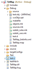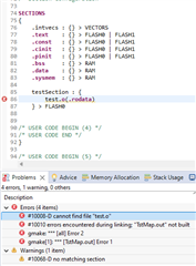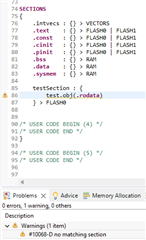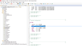 /* test.c file*/ #pragma SET_DATA_SECTION("test_section") uint8 testData; const uint8 testConstData; #pragma SET_DATA_SECTION() /* END test.c file*/ /*sys_link.cmd file */ MEMORY { RAM (RW) : origin=0x08002000 length=0x0003C000 } SECTIONS { test_section : START( StartAdrTestSection ) {} > RAM palign( 0x20 ) } /*End sys_link.cmd file */