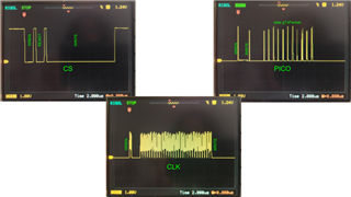 The write part looks okay, I have a timer which counts 1s for the start of transfer. I checked CS, CLK, and PICO on an oscilloscope. CLK is pretty hard to see, CS is lasting ~16us at low and I know that to write 16 bits without DMA takes ~6.6us.