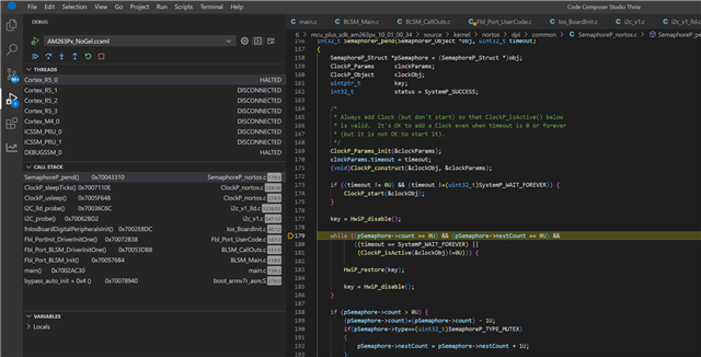 I'm encountering an issue with the I2C driver hanging in I2C_lld_probe function when reaching line #1234 Clock_uSleep.