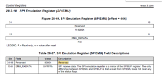 The field description for SPI Emulation Register (SPIEMU) states the following: