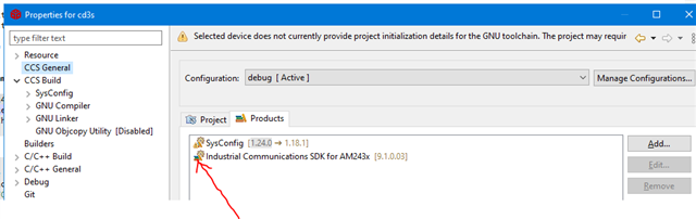 Sometimes I see that it appears with a red mark on the projet's -> properties -> General -> Products.
