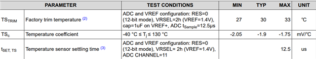 RE: MSPM0L1304: Internal temperature sensor - factory calibration