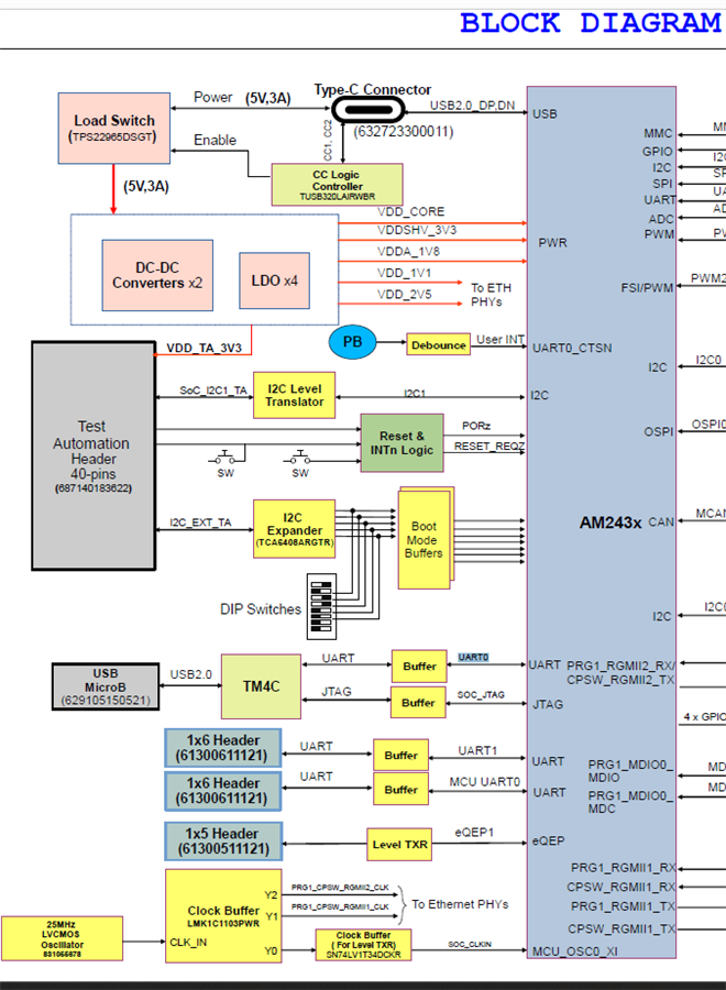 Please see the UART0 and UART1 in the above Block Diagram from the schematics.
