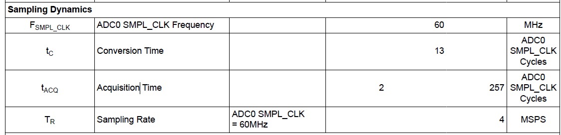The sample delay defaults to a value of zero which causes the acquisition time to be equal to 2 SMPL_CLK cycles. Please note, sample delay value is configurable in order to be able to fill up the sampling capacitor based on the application.
