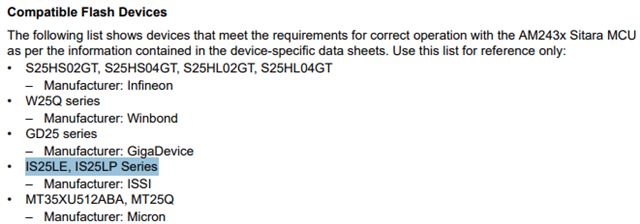 Could you please confirm if the S28HS512TGABHM010 (Infineon, +1.8Vcc) flash used on the TMDS243EVM has been validated for compatibility with AM243x? We are considering using this flash for an upcoming board revision.