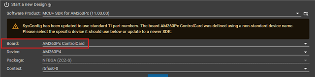- Follow up question. Why does sysconfig 1.25 force you to select a board type? We have a custom board and is neither Control Card or LaunchPad. What values should I put here?