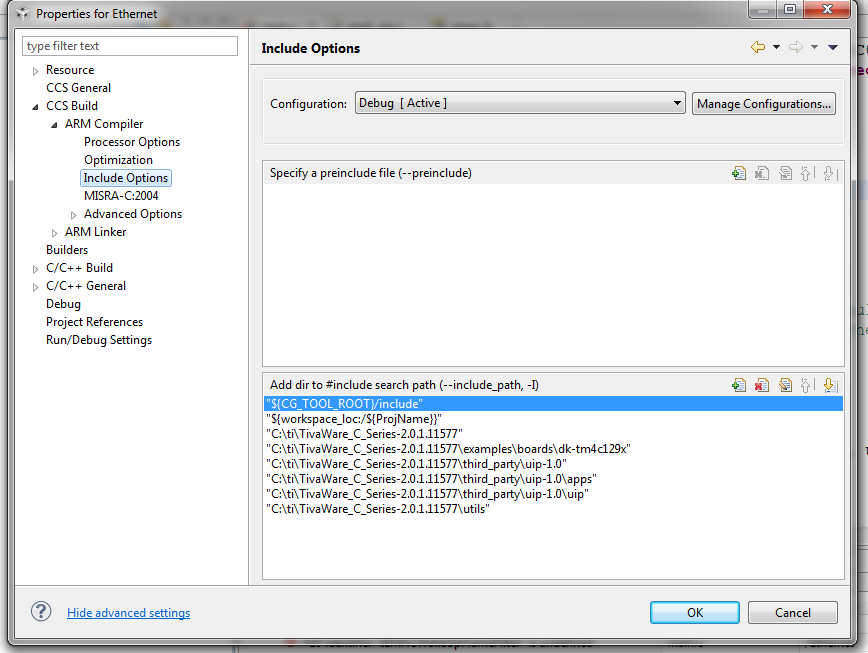 i'm using tiva c series development board(TM4C129x Development Board). when i run uIP from examples, that is running good, but when i copy this whole project into new project than i get compile error