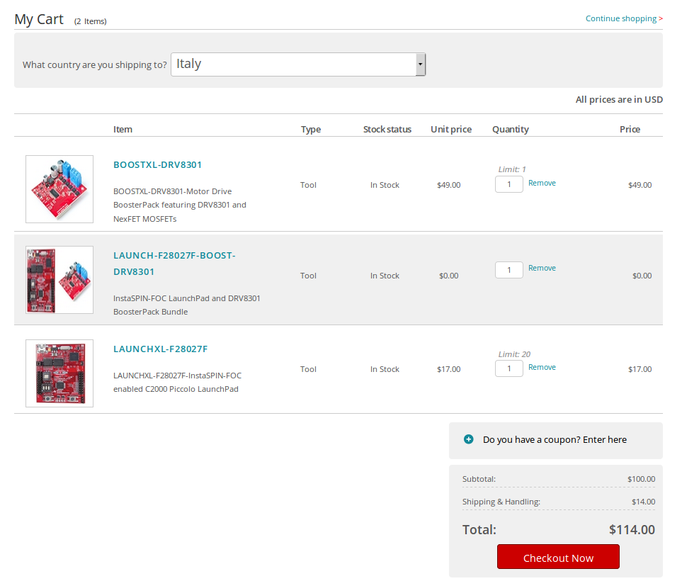 Removing items and or changing quantity result in wrong total cost, no way to empty cart and also cancelling all items a cost remain in total too. See this simple add of a single items where cost may be 66USD and 14 shipping (not so low but...) raied to 100 USD and again pay got to 114USD seems have shipping cost added twice??