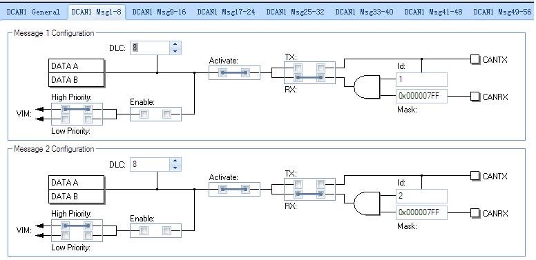 I want to use DCAN1 module, and set it to Loop Back Mode, Message box1 is for sending data and Message box2 is for receiving data,