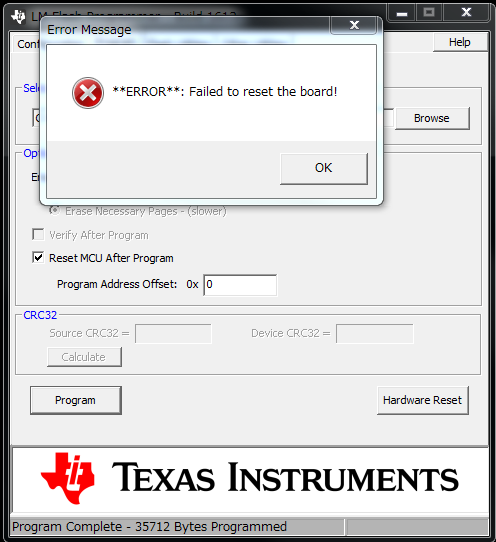 error message did not come out when written in LM3S + LMFlashProgrammer in the past.
