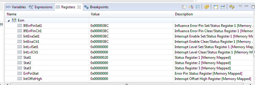 In HalCoGen (v3.06.00) I have configured channel 2,3,7,8,9 in ESM Group 1 to influence the nError pin. (This you can also see at the attached register screenshot from CCS).