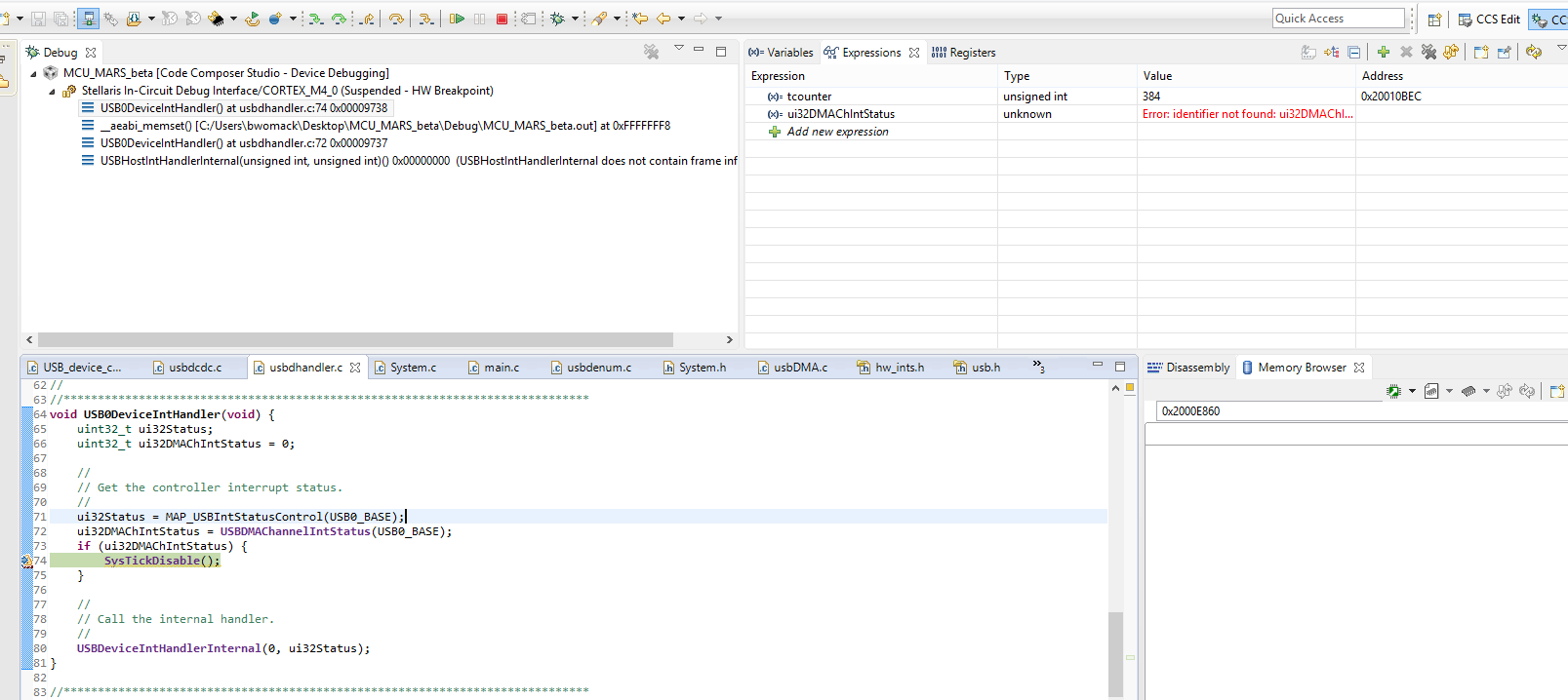My only problem currently is that I cannot figure out which interrupt service routine is being called for when the DMA transfer is complete. I set up the DMA transfer according to section 21.3.6.3 of the TM4C1294NCPDT datasheet where it talks about using DMA transfers with bulk endpoints.