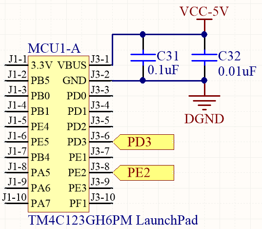 Could it be the bypass capacitors that I have in line with the microcontroller as shown in the figure below?