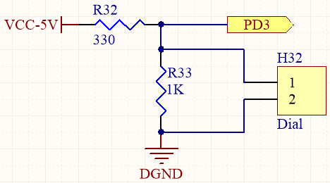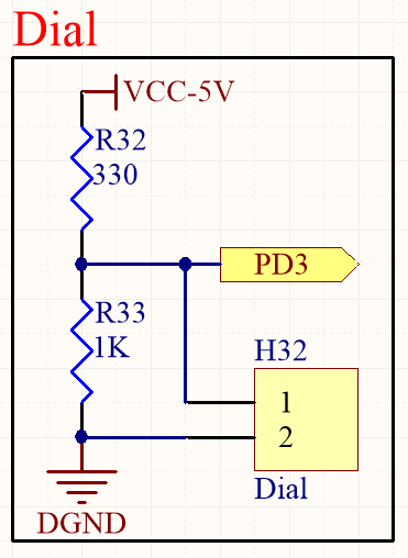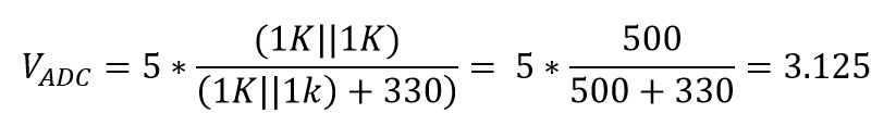 The potentiometer has a range of 0 to 1k ohms. This circuit allows me to adjust the ADC input voltage between 0V and about 3V.