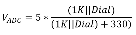 I am using an ADC on the TM4C123GH6PM Launchpad. I have constructed a voltage divider circuit to allow for a dial (potentiometer) to adjust the input voltage seen at the ADC pin (PD3), as shown here: