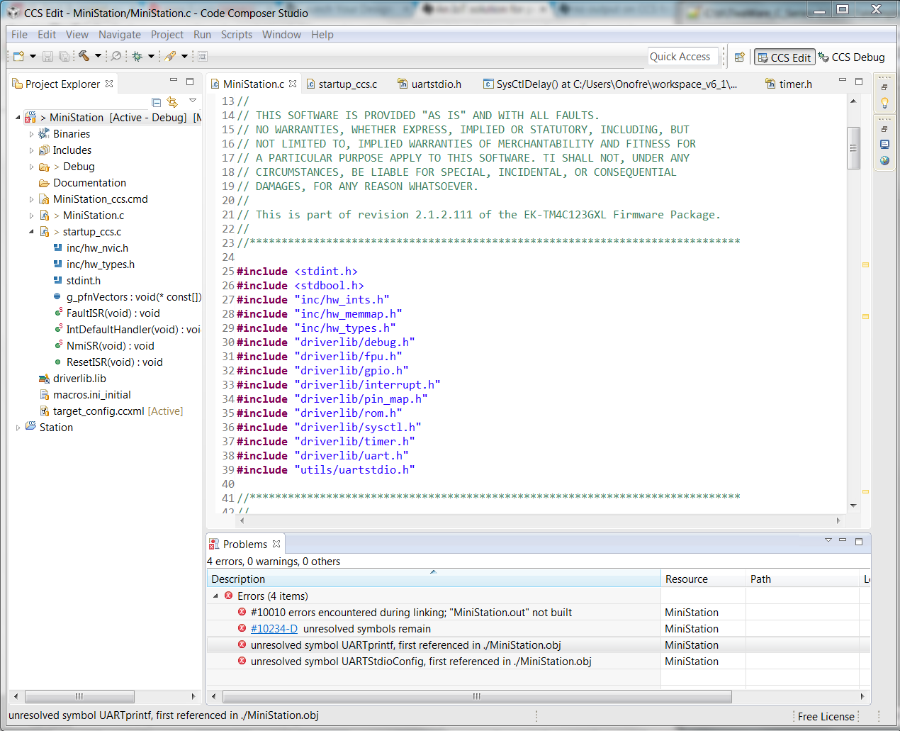 unresolved symbol UARTStdioConfig, first referenced in ./MiniStation.obj MiniStation C/C++ Problem