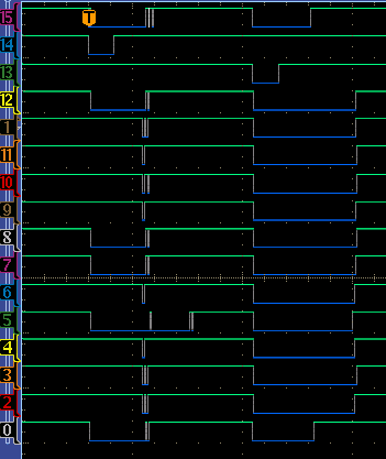 When the write following the read has D15 being zero, all is good. If D15 is a one, there is no motion on any control/address/data lines.